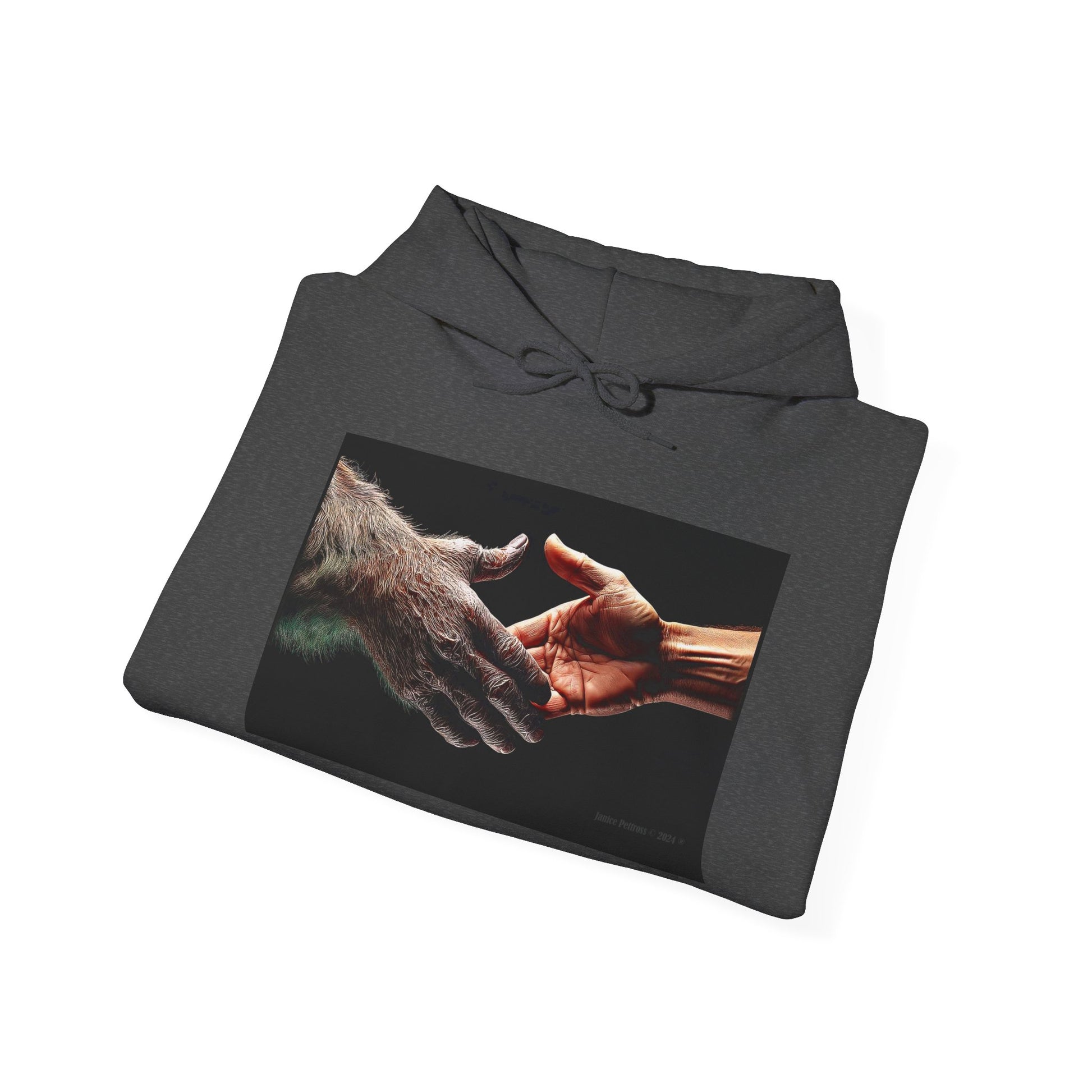This hoodie features an image of bigfoot offering a hand of friendship to a human, giving off a lighthearted yet serious vibe. Ideal for casual wear, outdoor activities, and cozy nights by the fire. Relevant for holidays and occasions like casual gatherings with friends.