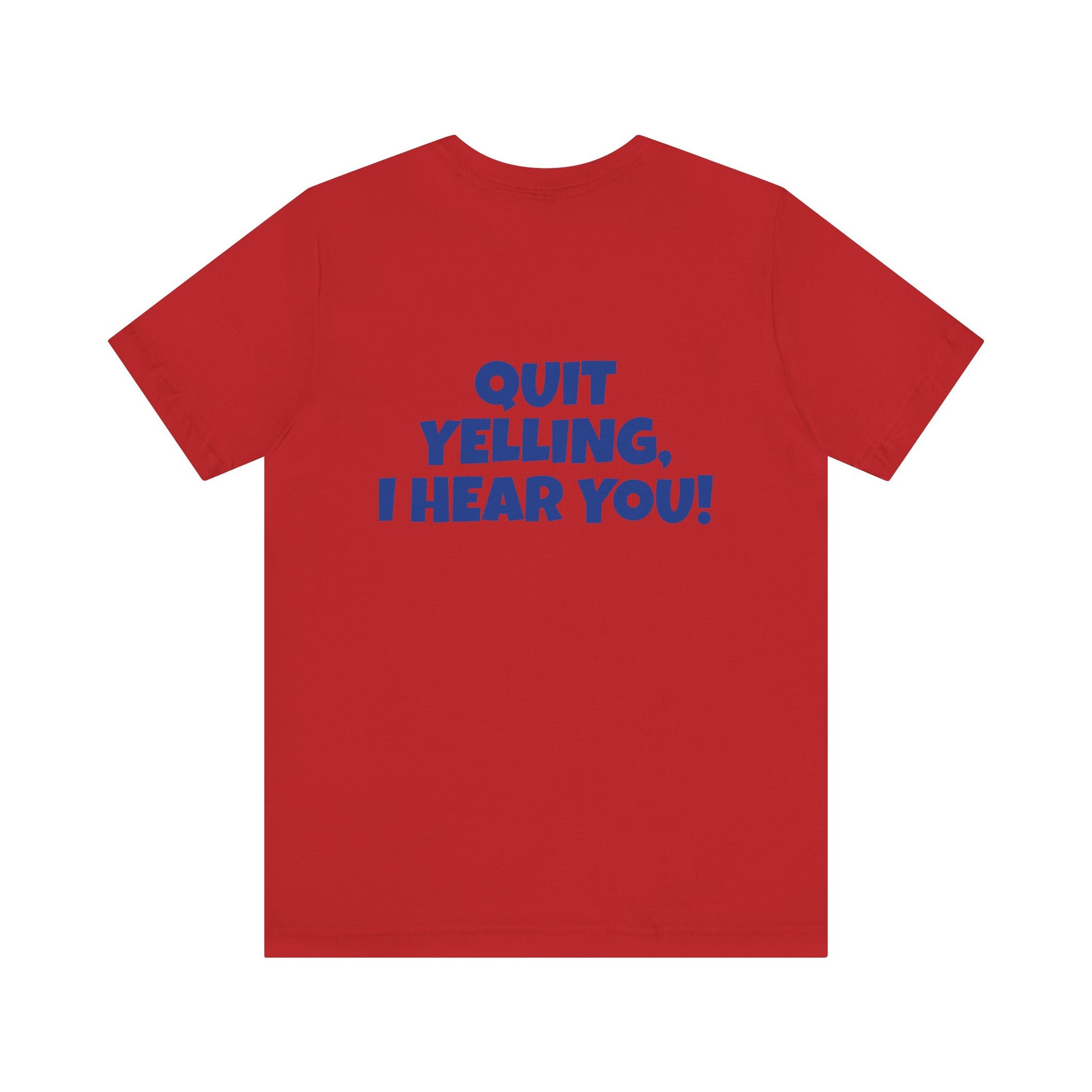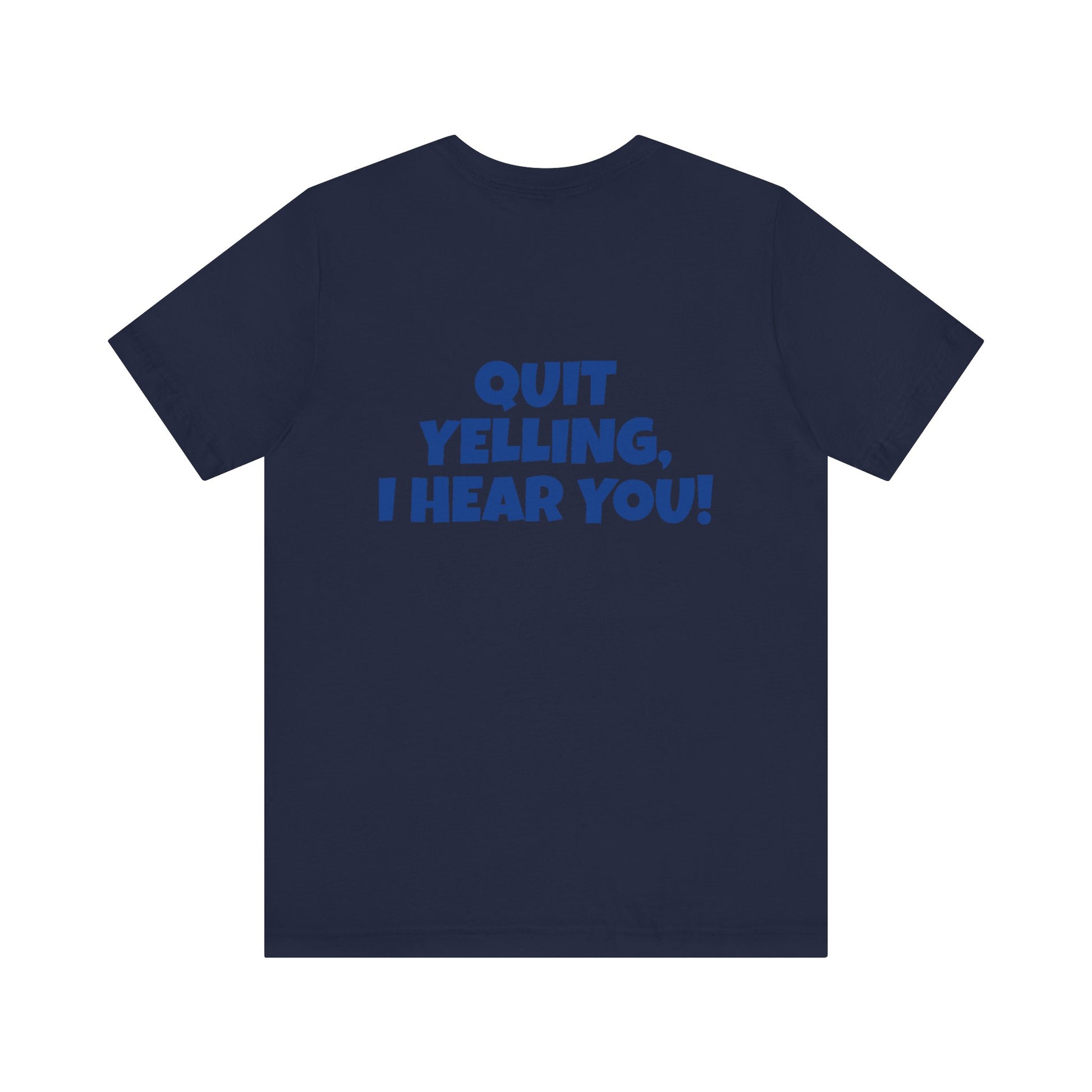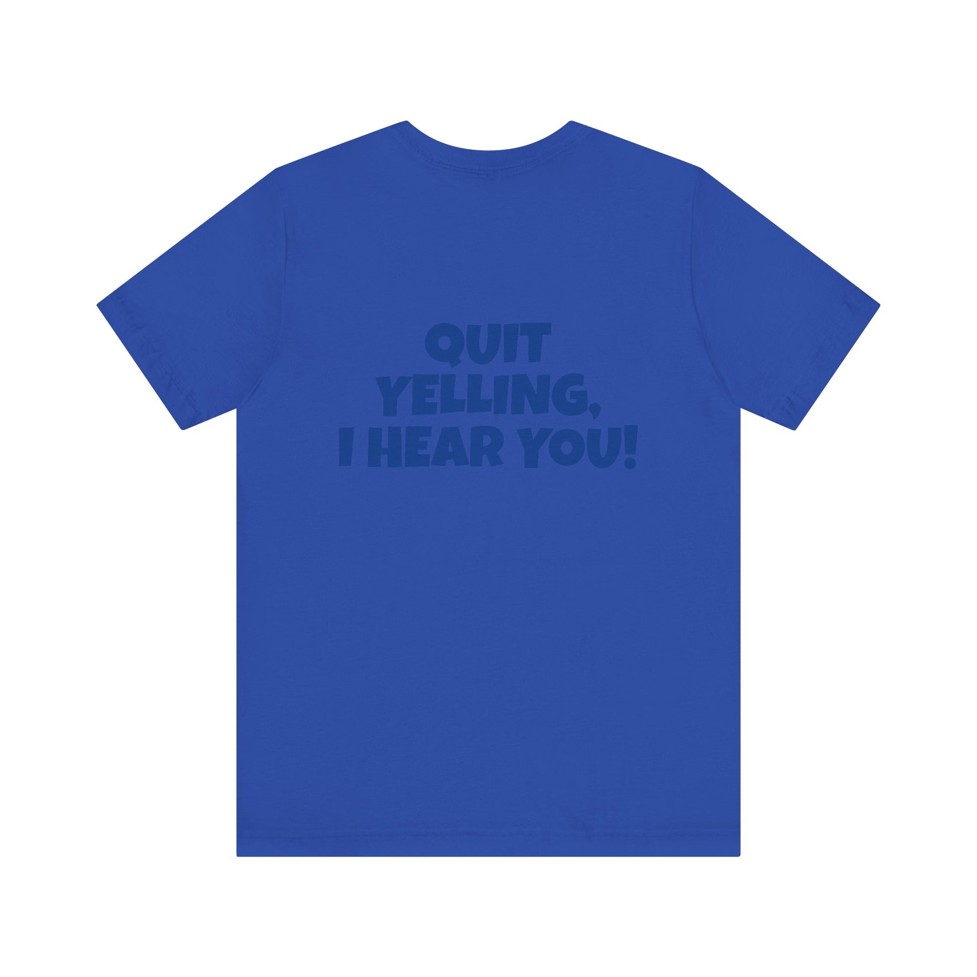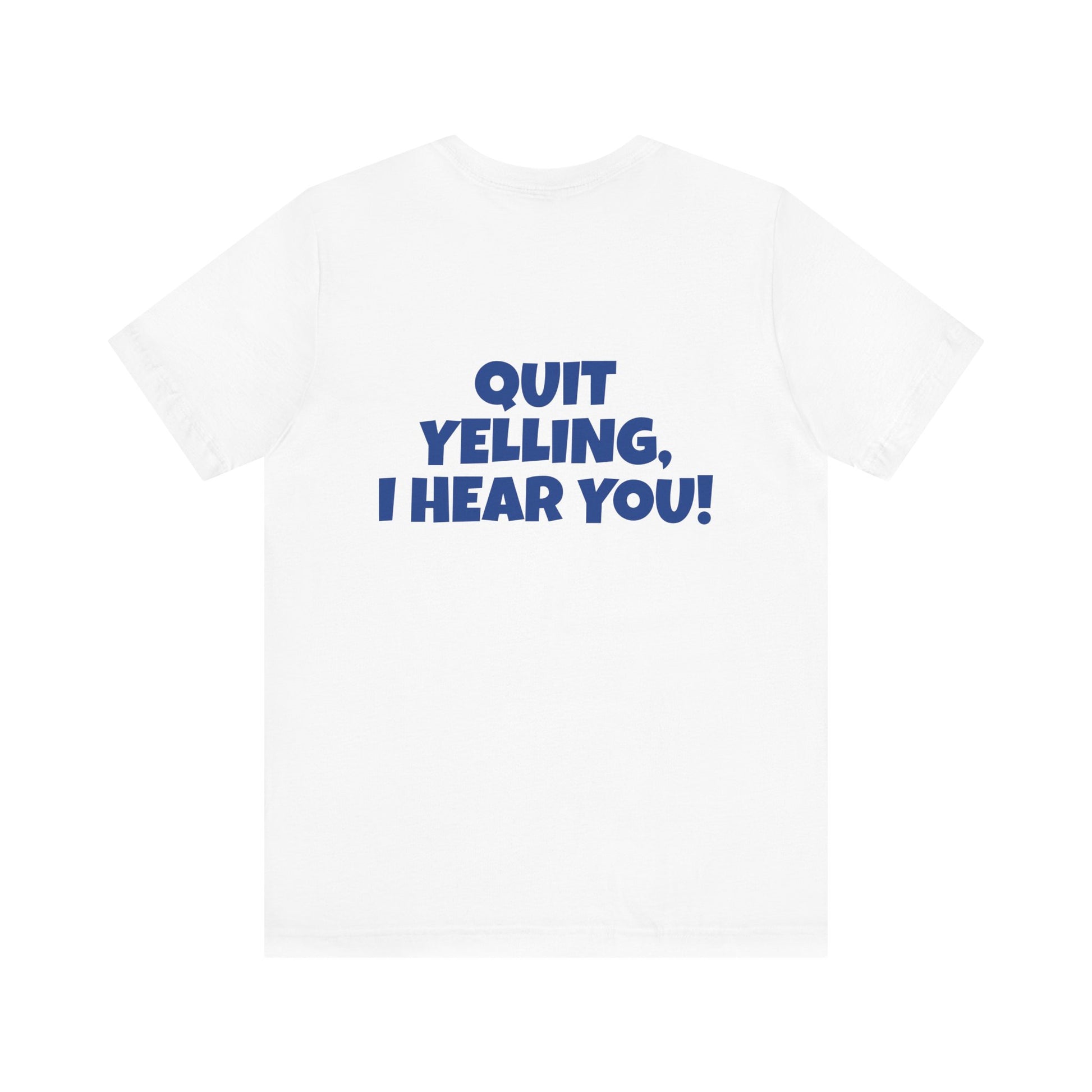 Copy of 'WHAT!' 'QUIT YELLING! I HEAR YOU!' Unisex Jersey Short Sleeve Tee